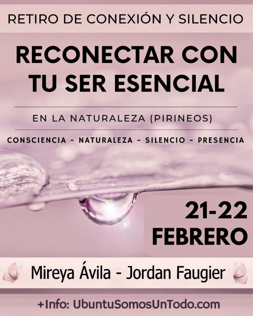 Te invitamos a Reconectar con el Ser que late en tu interior y tras el contorno de cada criatura. A reconectar con la totalidad de la que formas parte y con la totalidad de ti misma y de ti mismo. Por eso, durante el Retiro te compartiremos diversas prácticas que te ayudaran a conectar con el Ser.